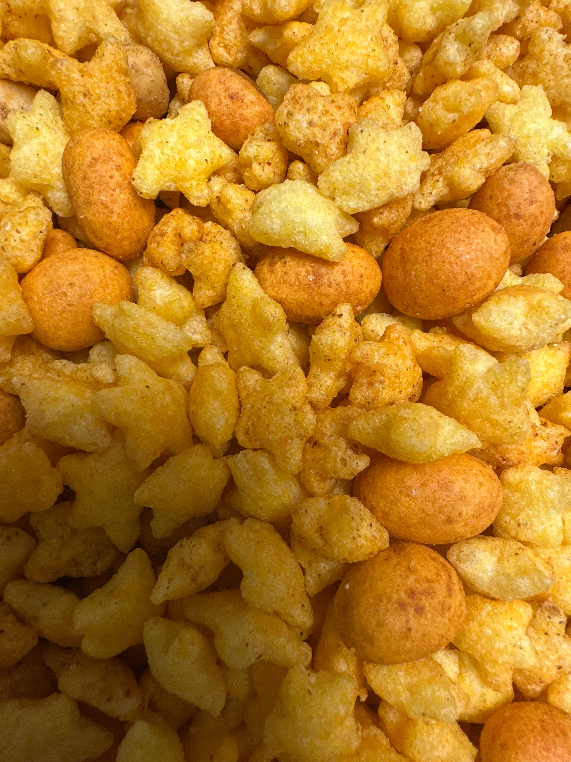 Mischung aus beschichteten Erdnüssen und Maissnack