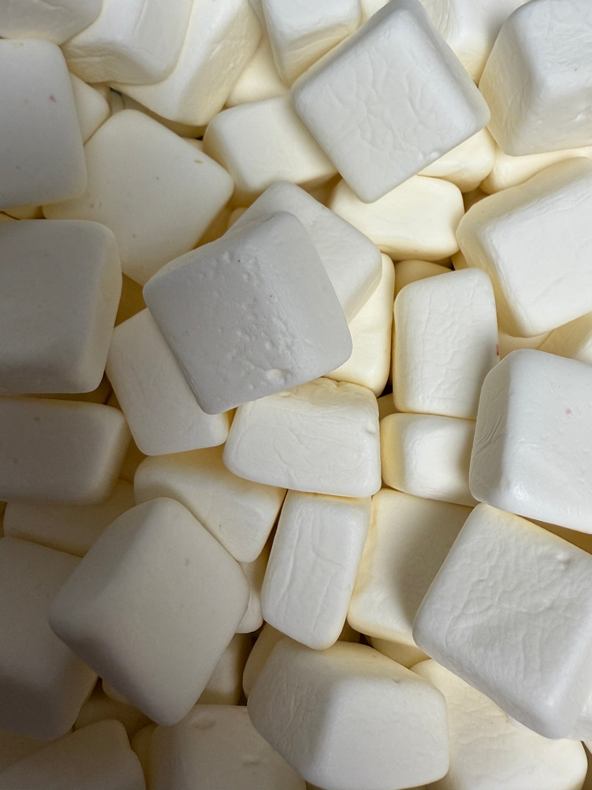 Zutaten: Glukose-Fructosesirup (EU), Zucker, Maisstärke, Schweinegelatine, pflanzliches Öl (Kokos), Überzugsmittel (E903), Vanillinaroma.